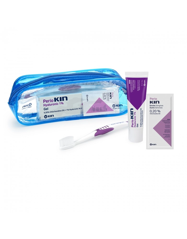 Kit consisting of Periokin mouthwash 12 ml , PerioKin Hyaluronic 1% gel 30 ml and a postsurgical toothbrush. Exclusively sold in the dental clinic in order to offer patients the complete oral hygiene kit for gums care.