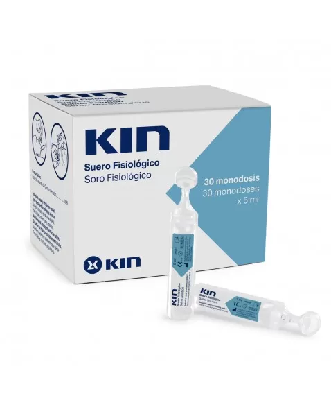 KIN's single-dose physiological serum acts by mechanical drag, cleaning dirt from both the nostrils and the surface of the eye. Without preservatives or buffering agents, it allows direct contact with the nasal mucosa and eyes without irritating them. It is indicated for both adults and children and also babies. Usually used to perform nasal washes and help eliminate mucus.