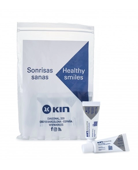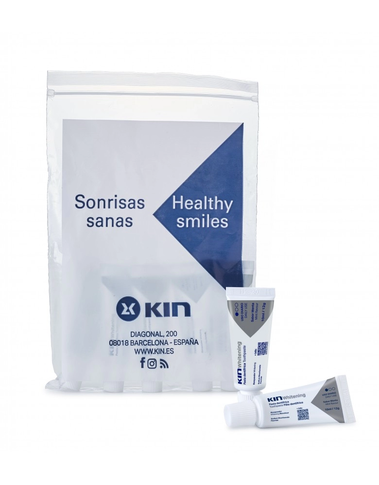 Bolsa conteniendo 10 unidades de KIN Whitening 12 g.