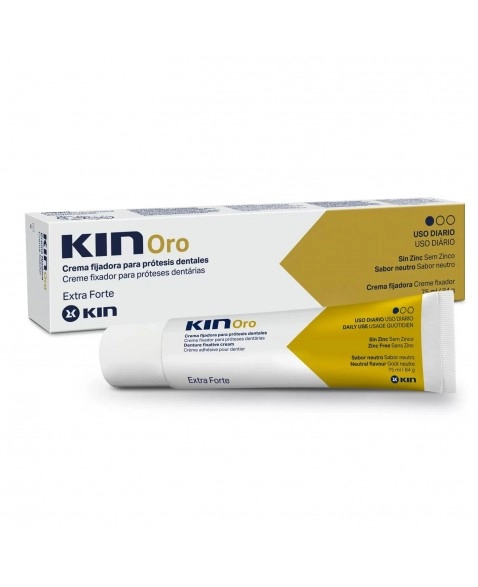 KIN Oro extraforte es una crema especialmente formulada para fijar de manera firme, segura y duradera las prótesis dentales, confiriendo seguridad y confort al portador de prótesis.